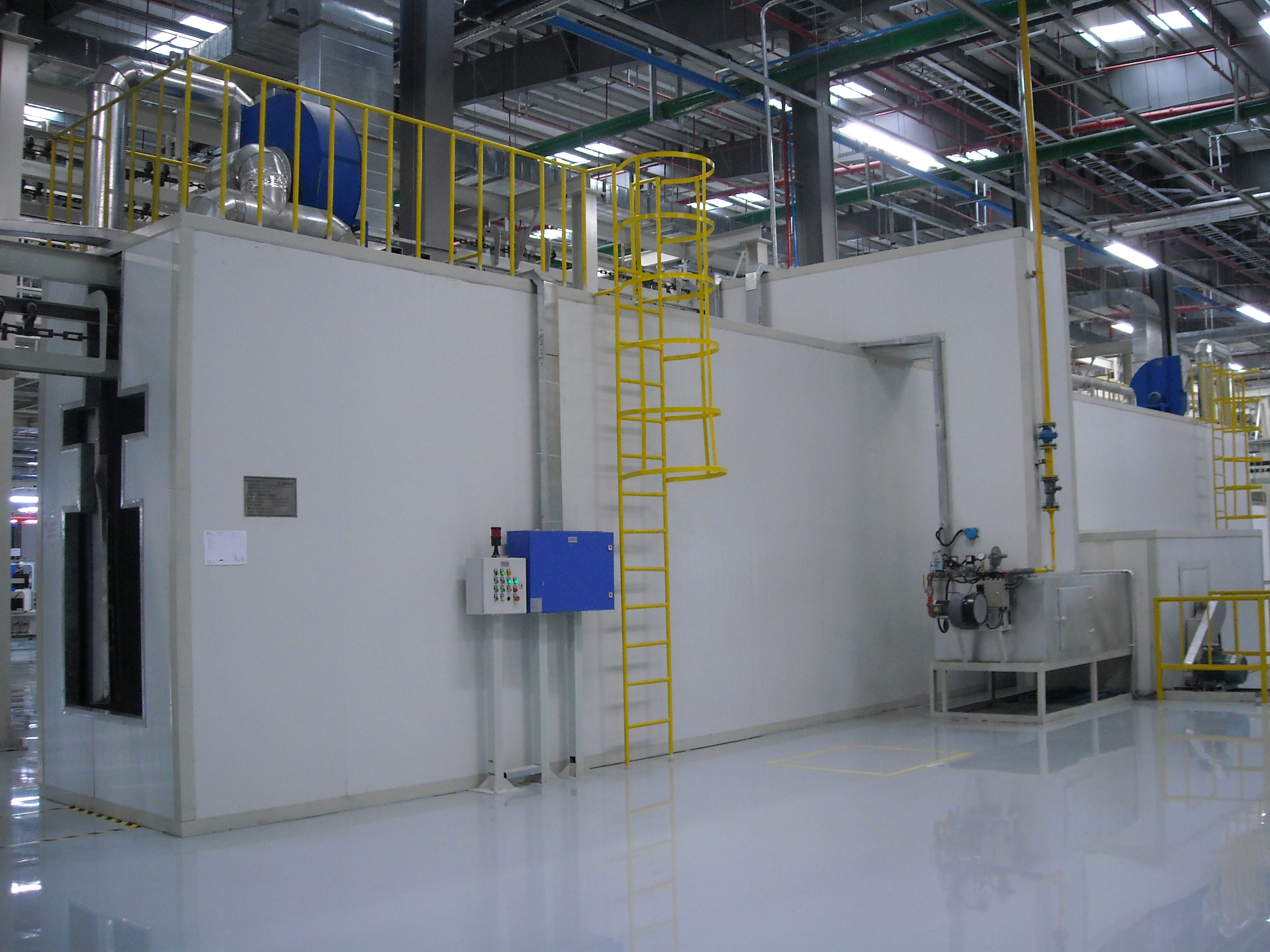 Composition: Pretreatment equipment, Auto-dosing equipment, cure oven, water curtain spray booth, Automatic sludge removal machine, Power and free chain conveyor system, Hydraulic lifters for loading and unloading, Rfid Tag Read/Write system, Central control system, Spraying gun and pump system for painting, Exhaust system etc.